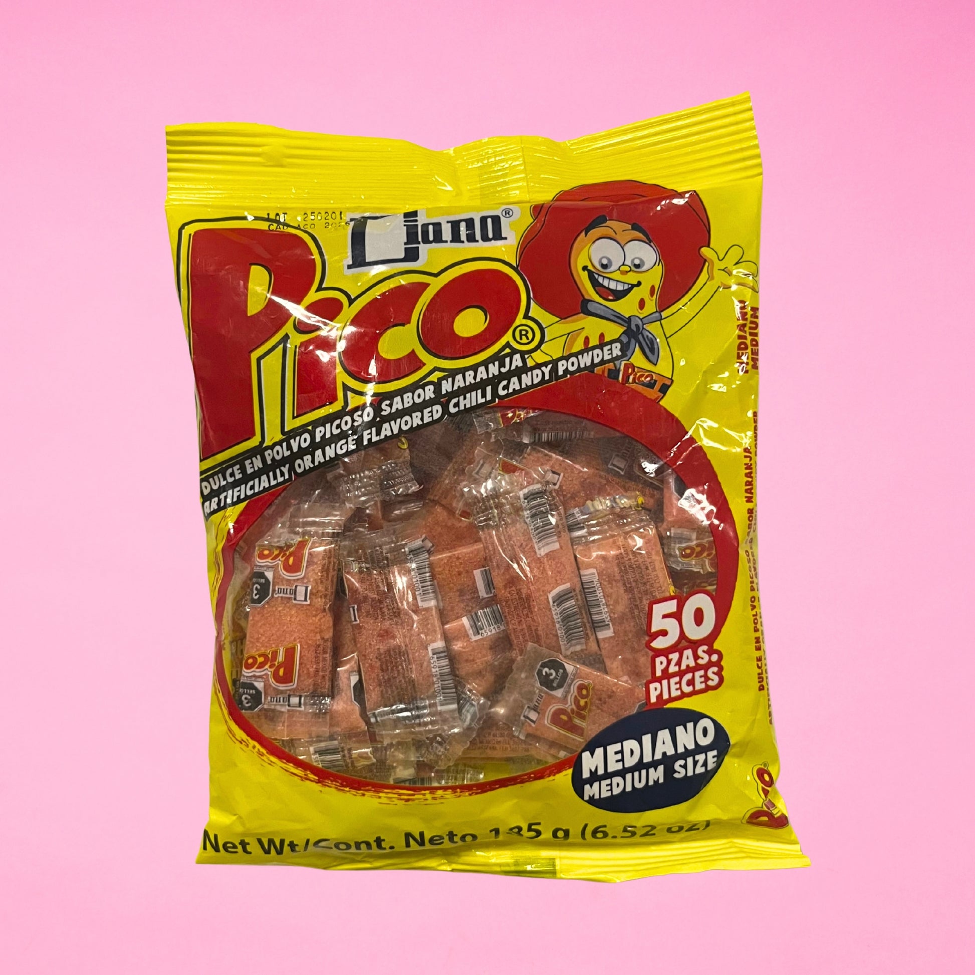 Bring the heat with the iconic Pico 50-pack! Each pack is packed with bold, spicy-sweet chili powder and a hint of citrusy orange flavor. Perfect for topping fruits, spicing up snacks, or enjoying straight from the packet, this classic Mexican favorite delivers a punch of flavor in every bite.